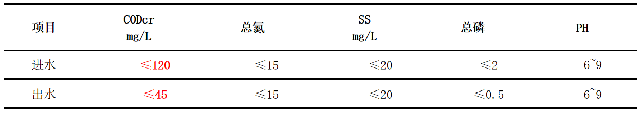 (a)COD去除率擔(dān)保:保證系統(tǒng)出水COD值不高于45㎎/L;