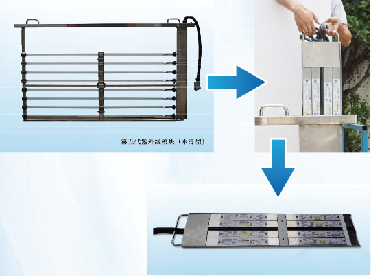 4、采用雙極粗細(xì)機(jī)械清洗設(shè)計(jì),避免紫外線系統(tǒng)長時間停運(yùn)后清洗造成套管損裂現(xiàn)象。
